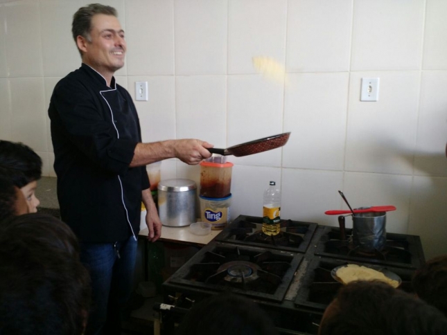 A primeira escola contemplada no município, com a Oficina de Gastronomia foi a Escola Estadual Antônio Papini. Esta escola foi escolhida devido ao trabalho pedagógico que a Diretora Marta e a Professora Selma desenvolvem junto com os alunos, no “Projeto Horta”. Neste projeto que considero modelo, as crianças aprendem a plantar e a cuidar da Horta da Escola. Dentro de um contexto lúdico e educacional, a gurizada interage com a natureza e começa desde cedo a ter noções de trabalho em equipe, plantio de verduras e hortaliças, controle de pragas, nutrição, etc. O hábito saudável de cultivar uma horta resgata costumes quase perdidos no mundo de hoje. Estes valores ensinados na escola, automaticamente são levados para casa, melhorando a qualidade de vida da família. A horta em casa além de economizar, desenvolve uma conscientização social e ambiental, traz um ganho imensurável na saúde das pessoas, no sabor e na qualidade dos alimentos cultivados.</p>