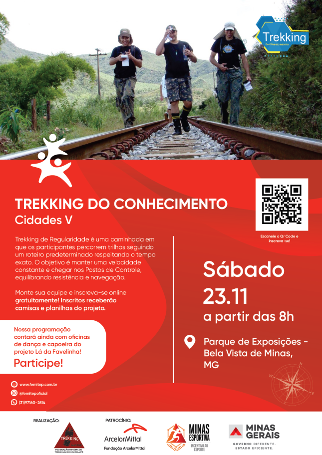 Patrocinado pela ArcelorMittal, o projeto "Trekking do Conhecimento Cidades V" está em Bela Vista de Minas com apoio da Lei de Incentivo ao Esporte de Minas Gerais.
