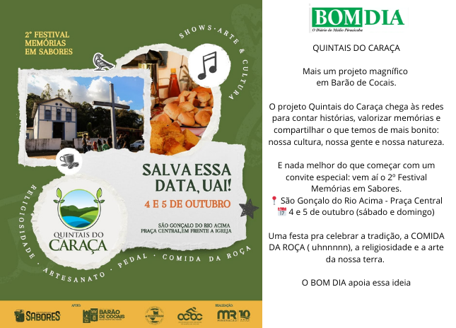 E nada melhor do que começar com um convite especial: vem aí o 2º Festival Memórias em Sabores.