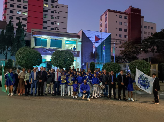 A Câmara Municipal de Joao Monlevade realizou, nessa quarta-feira, 19, a cerimônia de entrega da Moção de Aplausos à Fanfarra da Escola Municipal Israel Pinheiro (EMIP). A homenagem foi entregue ao regente Talles Magalhães e ao diretor da escola Júlio César Gomes em nome dos integrantes do grupo.