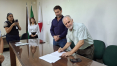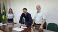 O prefeito de João Monlevade, Dr. Laércio Ribeiro (PT), assinou na tarde desta quinta-feira (12), o termo de cessão de terreno ao Consórcio Intermunicipal de Saúde do Médio Piracicaba (Cismepi), oficializando a doação da área para a construção da sede própria do Consórcio. O ato contou com a presença do presidente da Associação dos Municípios da Microrregião do Médio Piracicaba (Amepi), vice-presidente do Cismepi e prefeito de Rio Piracicaba, Augusto Henrique da Silva (Cidadania), da secretária executiva do consórcio, Elaine Caldeira, da oficial do Cartório Primeiro Ofício de Notas de João Monlevade, Thaís Alves Salazar, além de funcionários do consórcio.